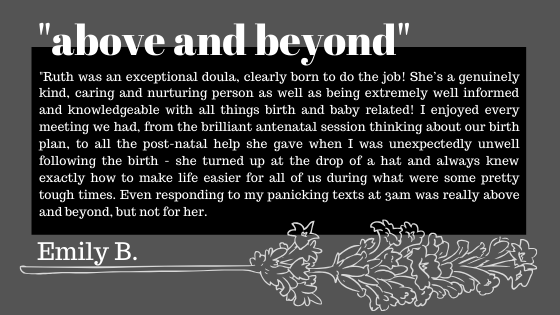 “After repeated problems and rapidly losing faith in the NHS early on in our pregnancy, we hired Ruth to be our doula, and it turned out to be the best decision!